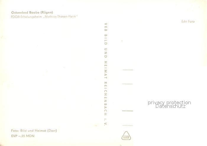 72952585 Baabe Ostseebad Ruegen FDGB Erholungsheim Mathias Thesen Heim postalisch nicht gelaufen Erhaltung siehe scans [FriedD77] KatCode: 11110013061003