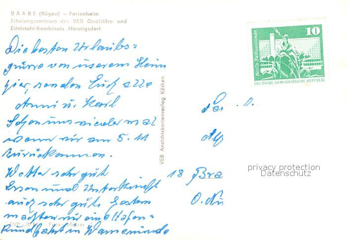 72925711 Baabe Ostseebad Ruegen Ferienheim postalisch nicht gelaufen Erhaltung siehe scans [PaolaD17] KatCode: 11110013061003