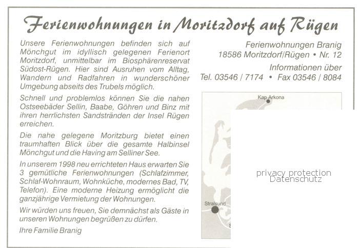 73754945 Baabe Ostseebad Ruegen Having am Selliner See Ferienwohnungen in Moritzdorf postalisch nicht gelaufen Werbekarte (keine Postkarte) Erhaltung siehe scans [FriedD77] KatCode: 11110013061003