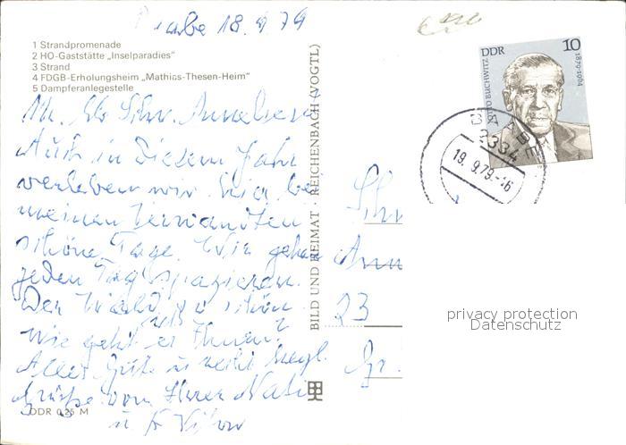 72027037 alte Postkarte Baabe Ostseebad Ruegen HO Gasstaette Inselparadies Strand FDGB Erholungsheim Mathias Thesen Heim postalisch gelaufen Erhaltung siehe scans KatCode: 11110013061003