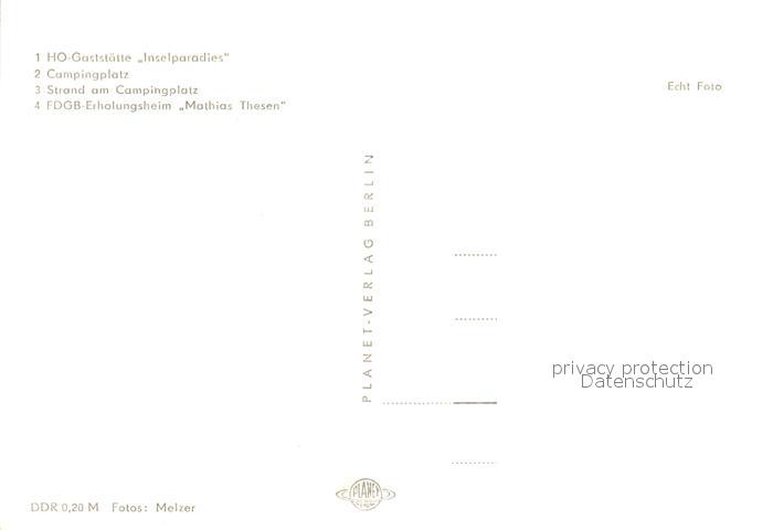 73099344 Baabe Ostseebad Ruegen HO Gaststaette Inselparadies Campingplatz Strand FDGB Heim postalisch nicht gelaufen Erhaltung siehe scans [KathaD81] KatCode: 11110013061003