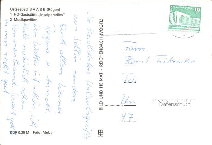 72473951 alte Postkarte Baabe Ostseebad Ruegen HOG Inselparadies Musikpavillon postalisch gelaufen Erhaltung siehe scans KatCode: 11110013061003