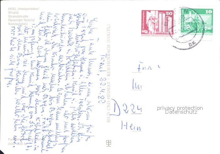72140446 alte Postkarte Baabe Ostseebad Ruegen HOG Inselparadies Strand Strasse Rasender roland Konzertplatz postalisch gelaufen Erhaltung siehe scans KatCode: 11110013061003
