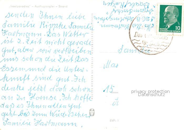 73108096 alte Postkarte Baabe Ostseebad Ruegen Inselparadies Ausflugssegler Strand postalisch gelaufen Erhaltung siehe scans [KathaD81] KatCode: 11110013061003