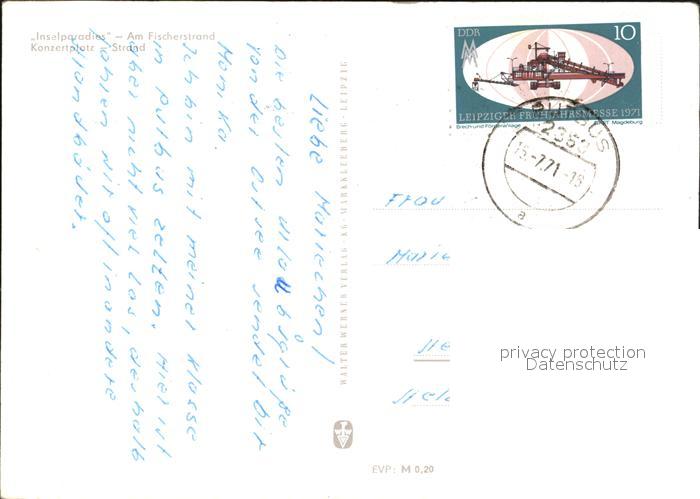72418982 alte Postkarte Baabe Ostseebad Ruegen Inselparadies Fischerstrand Konzertplatz Strandpartie postalisch gelaufen Erhaltung siehe scans KatCode: 11110013061003
