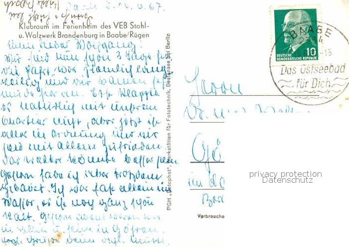 72704457 alte Postkarte Baabe Ostseebad Ruegen Klubraum im Ferienheim VEB Brandenburg postalisch gelaufen Erhaltung siehe scans [FriedD77] KatCode: 11110013061003
