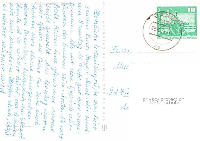 72652100 alte Postkarte Baabe Ostseebad Ruegen Restaurant Inselparadies Ausflugssegler Strand postalisch gelaufen Erhaltung siehe scans [FriedD77] KatCode: 11110013061003