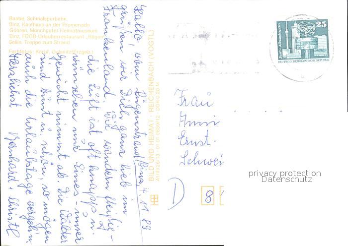 72257747 alte Postkarte Baabe Ostseebad Ruegen Schmalspurbahn Binz Kaufhaus Promenade Goehren Museum Binz FDGB Urlauberrestaurant Sellin Strand postalisch gelaufen Erhaltung siehe scans KatCode: 11110013061003