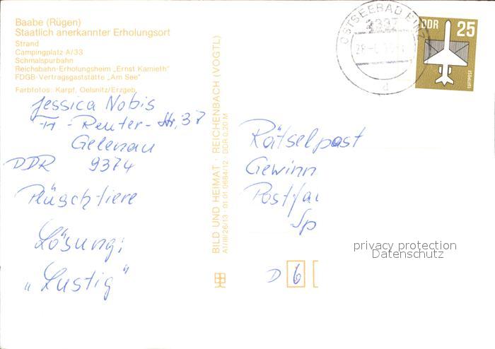 72377855 alte Postkarte Baabe Ostseebad Ruegen Strand Campingplatz Schmalspurbahn postalisch gelaufen Erhaltung siehe scans KatCode: 11110013061003