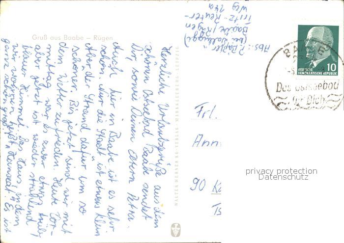 72372767 alte Postkarte Baabe Ostseebad Ruegen Strand Segeljolle postalisch gelaufen Erhaltung siehe scans KatCode: 11110013061003