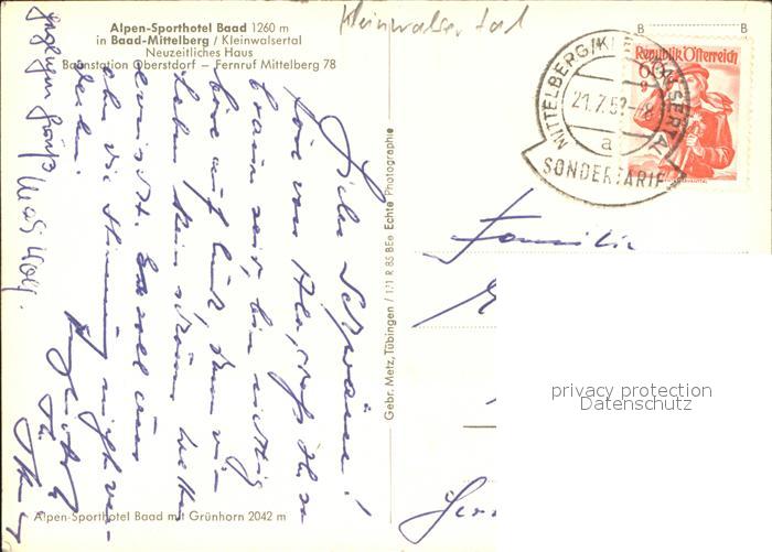 41636154 Baad Mittelberg Kleinwalsertal Alpen-Sporthotel Baad postalisch gelaufen Erhaltung siehe scans Alte Ansichtskarte Postkarte alte Postkarte Paol Katcode 11390
