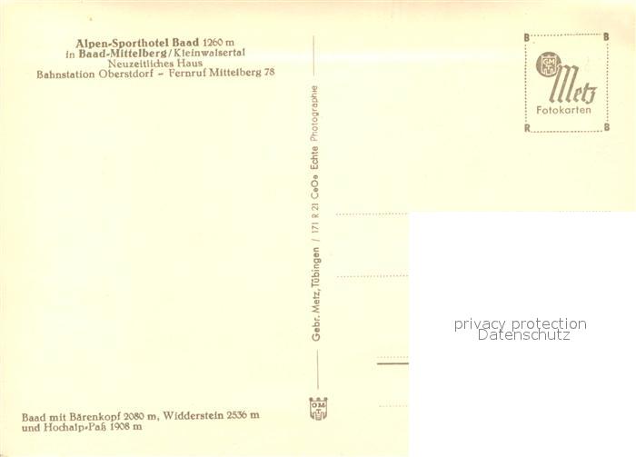 73133079 Baad Mittelberg Kleinwalsertal Panorama mit Baerenkopf Widderstein und Hochalppass postalisch nicht gelaufen Erhaltung siehe scans [FriedD77] KatCode: 11390