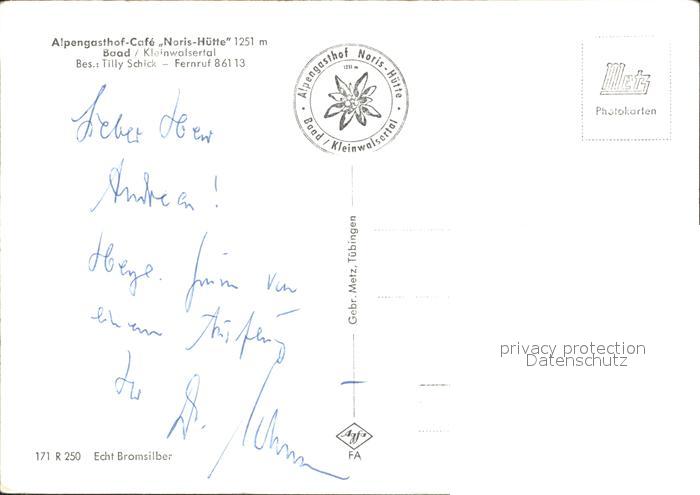 72359939 Baad Mittelberg Kleinwalsertal Walmendinger Horn Gamsfusabfahrt Widderstein Gruenhorn Ochsenhofer Scharte Hoch Starzel Starzeljoch Alpengasthof Noris Huette postalisch nicht gelaufen Erhaltung siehe scans KatCode: 11390