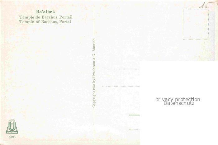 74037071 Baalbek Baalbeck Lebanon Temple of Bacchus Portal Antike Staette postalisch nicht gelaufen Erhaltung siehe scans [FriedD77] KatCode: 13130