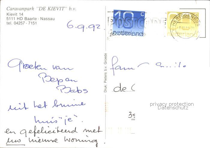 old postcard Baarle Nassau Caravanpark De Kievit Kinderspielplatz Tennis Wiedehopf postalisch gelaufen Erhaltung siehe scans