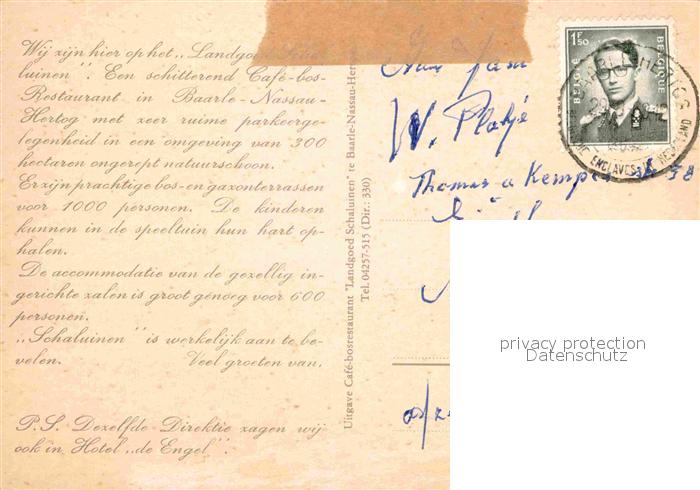 old postcard Baarle Nassau Landgoed Schaluinen postalisch gelaufen Erhaltung siehe scans [WerneD78]