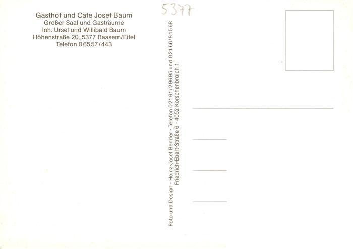 73894411 Baasem Gasthof und Cafe Josef Baum Kath Pfarrkirche Gastraeume Bar postalisch nicht gelaufen Erhaltung siehe scans [WerneD78] KatCode: 11110005366012