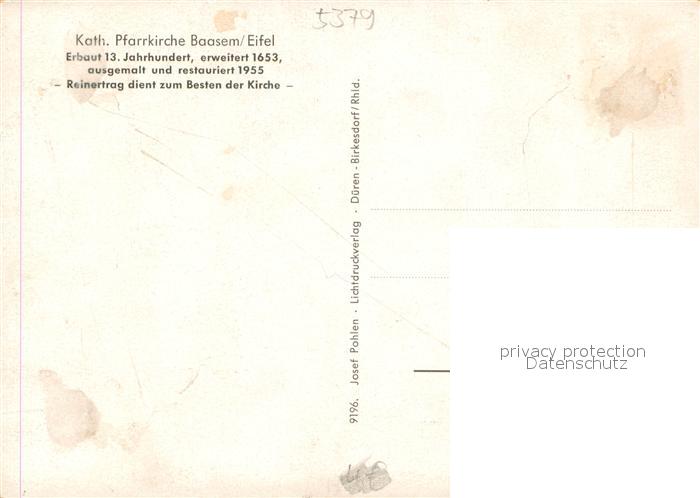 73697288 Baasem Katholische Pfarrkirche Innenansicht 13. Jhdt. postalisch nicht gelaufen Erhaltung siehe scans [FriedD77] KatCode: 11110005366012