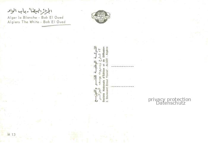 74141793 Bab-El-Oued Algerie Alger la Blanche postalisch nicht gelaufen Erhaltung siehe scans [WerneD78] KatCode: 18030