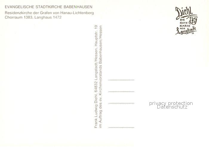 73273120 Babenhausen Hessen Evangelische Stadtkirche Chorraum Langhaus Residenzkirche der Grafen von Hanau Lichtenberg postalisch nicht gelaufen Erhaltung siehe scans [FriedD77] KatCode: 11110006432002