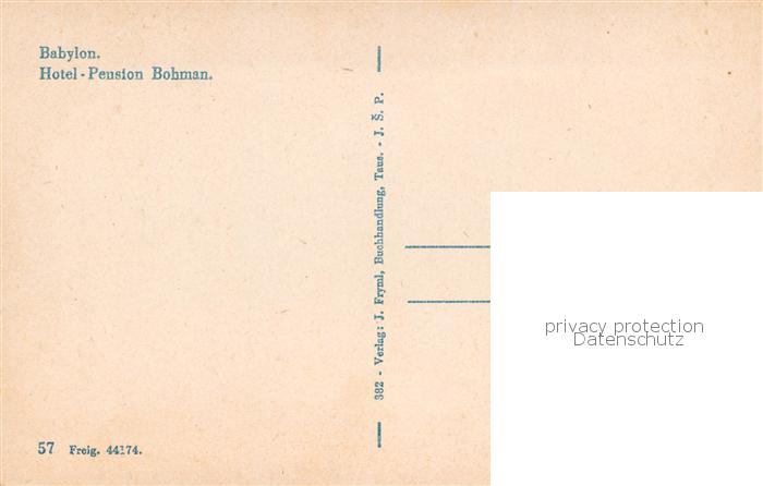 73770592 Babylon Babilon CZ Hotel Pension Bohman postalisch nicht gelaufen Erhaltung siehe scans [FriedD77] Frie Katcode 11520