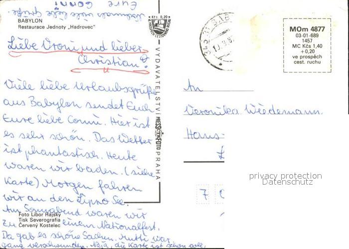 old postcard Babylon Babilon Restaurace Jednoty Hadrovec postalisch gelaufen Erhaltung siehe scans