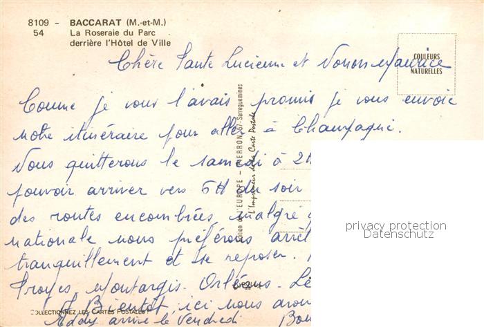 13826017 Baccarat 54 La Roseraie du Parc derriere l’Hotel de Ville postalisch nicht gelaufen Erhaltung siehe scans [FriedD77] Frie Katcode 11170054254039