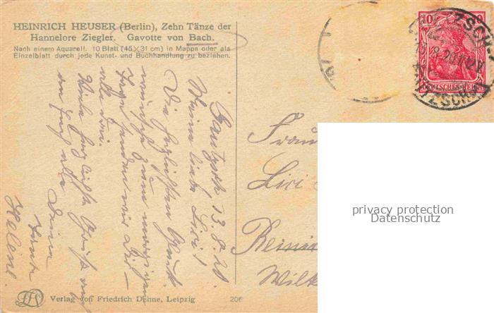 74027743 alte Postkarte BACH Gavotte von Kuenstlerkarte Heinrich Heuser Zehn Taenze der Hannelore Ziegler postalisch gelaufen Erhaltung siehe scans [IrynaD87] KatCode: 22240000003210