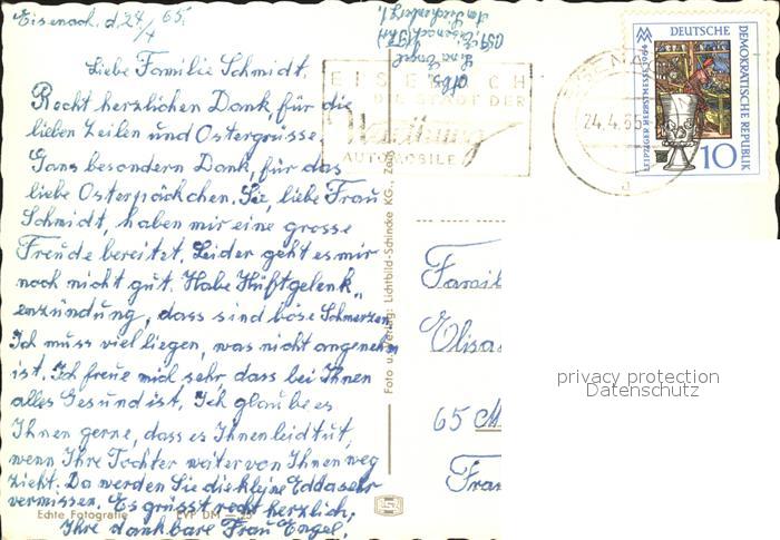 alte Postkarte Bach Johann Sebastian Denkmal Eisenach postalisch gelaufen Erhaltung siehe scans