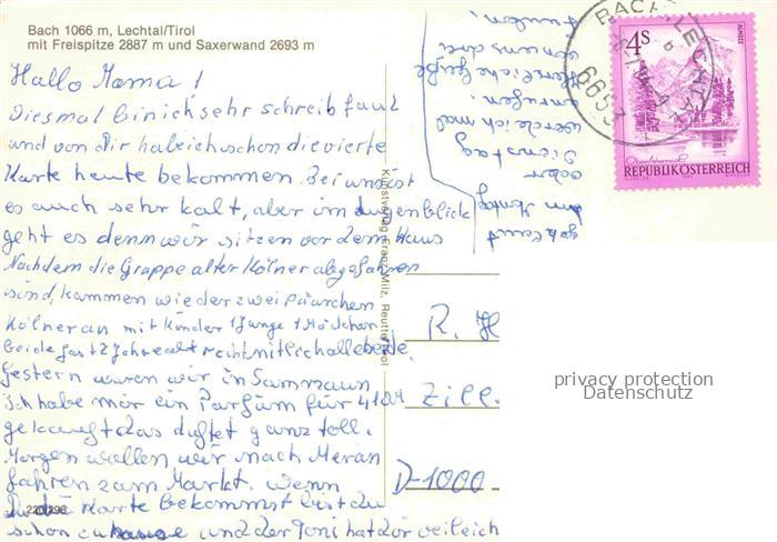 74109606 alte Postkarte Bach Lechtal Tirol AT mit Freispitze und Saxerwand postalisch gelaufen Erhaltung siehe scans [WerneD78] KatCode: 11390331070801