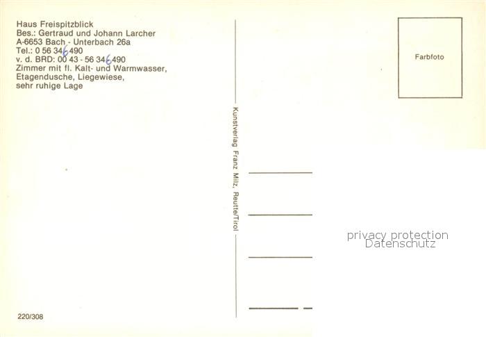 73073683 Bach Tirol Haus Freispitzblick postalisch nicht gelaufen Erhaltung siehe scans [FriedD77] KatCode: 11390331070801