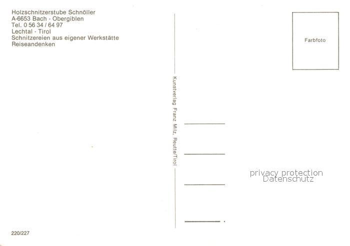 72950769 Bach Tirol Holzschnitzstube Schnoeller postalisch nicht gelaufen Erhaltung siehe scans [WerneD78] KatCode: 11390331070801