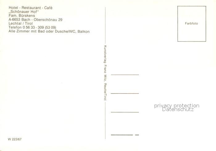 73677935 Bach Tirol Hotel Restaurant Cafe Schoenauer Hof postalisch nicht gelaufen Erhaltung siehe scans [WerneD78] KatCode: 11390331070801