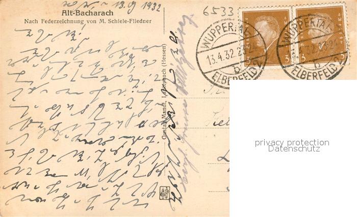 43287490 alte Postkarte Bacharach Rhein Alt Bacharach Federzeichnung postalisch gelaufen Erhaltung siehe scans [FriedD77] KatCode: 11110007339003