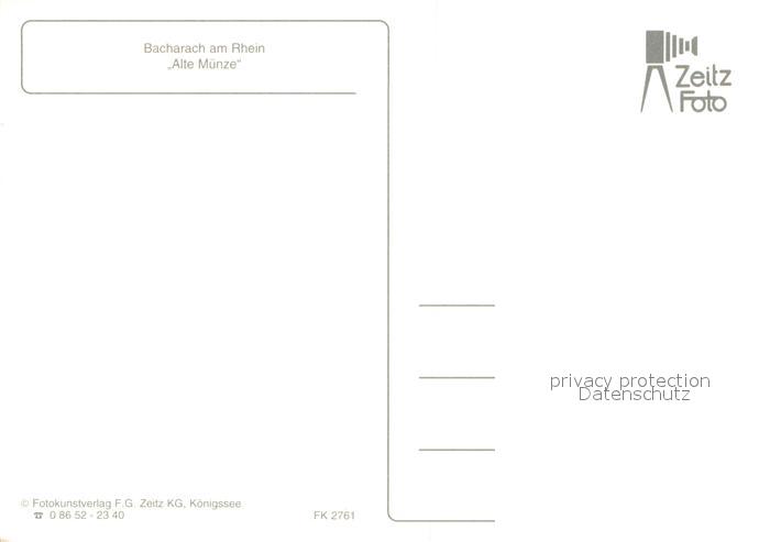 73615864 Bacharach Rhein Alte Muenze Terrasse postalisch nicht gelaufen Erhaltung siehe scans [WerneD78] KatCode: 11110007339003