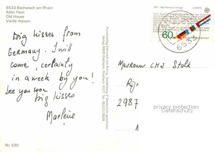 72661253 alte Postkarte Bacharach Rhein Altes Haus postalisch gelaufen Erhaltung siehe scans [WerneD78] KatCode: 11110007339003