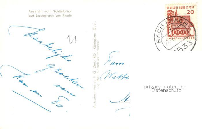 73331287 alte Postkarte Bacharach Rhein Aussicht vom Schoenblick postalisch gelaufen Erhaltung siehe scans [WerneD78] KatCode: 11110007339003