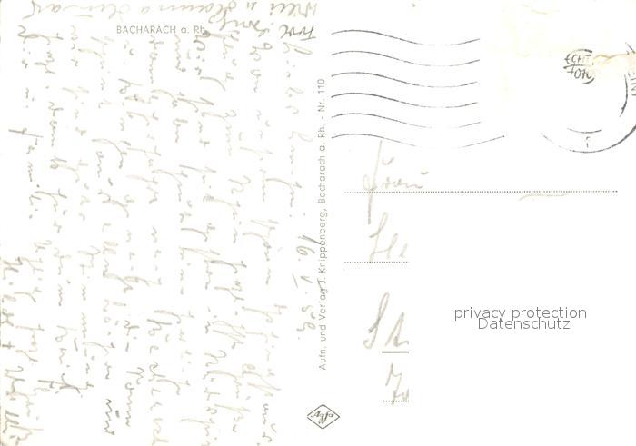 73141898 alte Postkarte Bacharach Rhein Blick von den Weinbergen postalisch gelaufen Erhaltung siehe scans [FriedD77] KatCode: 11110007339003