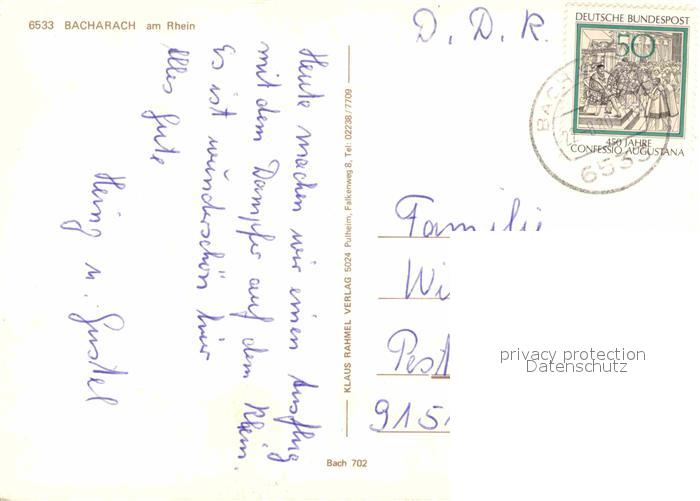 72617263 alte Postkarte Bacharach Rhein Burg Stahleck postalisch gelaufen Erhaltung siehe scans [WerneD78] KatCode: 11110007339003