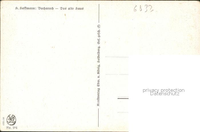 41601020 Bacharach Rhein Das alte Haus Künstlerkarte H. Hoffmann KatCode 11110007339003