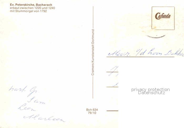 72914944 Bacharach Rhein Ev Peterskirche 13. Jhdt. Stummorgel 18. Jhdt. postalisch nicht gelaufen Erhaltung siehe scans [FriedD77] KatCode: 11110007339003