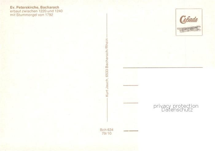 73814274 Bacharach Rhein Ev Peterskirche mit Stummorgel postalisch nicht gelaufen Erhaltung siehe scans [FriedD77] KatCode: 11110007339003