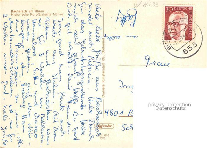 72903538 alte Postkarte Bacharach Rhein Historische Kurpfaelzische Muenze postalisch gelaufen Erhaltung siehe scans [FriedD77] KatCode: 11110007339003