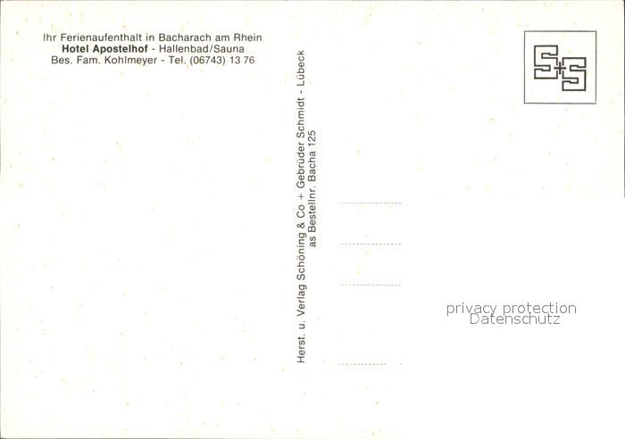 72312480 Bacharach Rhein Hotel Apostelhof Hallenbad Rheinpartie postalisch nicht gelaufen Erhaltung siehe scans KatCode: 11110007339003
