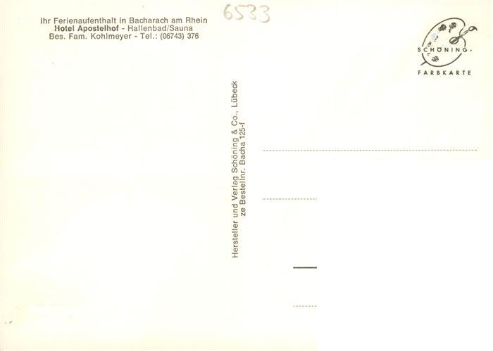 73893527 Bacharach Rhein Hotel Apostelhof Hallenbad postalisch nicht gelaufen Erhaltung siehe scans [WerneD78] KatCode: 11110007339003