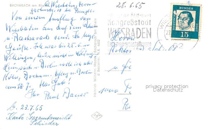 43362385 alte Postkarte Bacharach Rhein Hotel Herbrecht Panorama postalisch gelaufen Erhaltung siehe scans [WerneD78] KatCode: 11110007339003