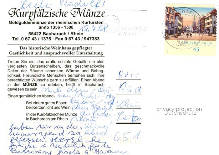 73080445 alte Postkarte Bacharach Rhein Kurpfaelzische Muenze Historisches Weinhaus Fachwerkhaus postalisch gelaufen Erhaltung siehe scans [FriedD77] KatCode: 11110007339003