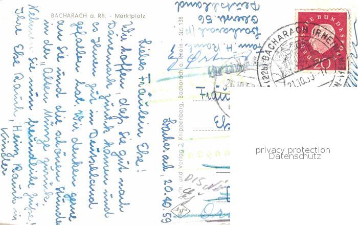 72912461 alte Postkarte Bacharach Rhein Marktplatz postalisch gelaufen Erhaltung siehe scans [WerneD78] KatCode: 11110007339003