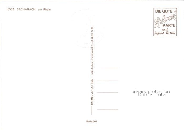 72482648 Bacharach Rhein Ortsansicht Schloss Fahrgastschiff postalisch nicht gelaufen Erhaltung siehe scans KatCode: 11110007339003