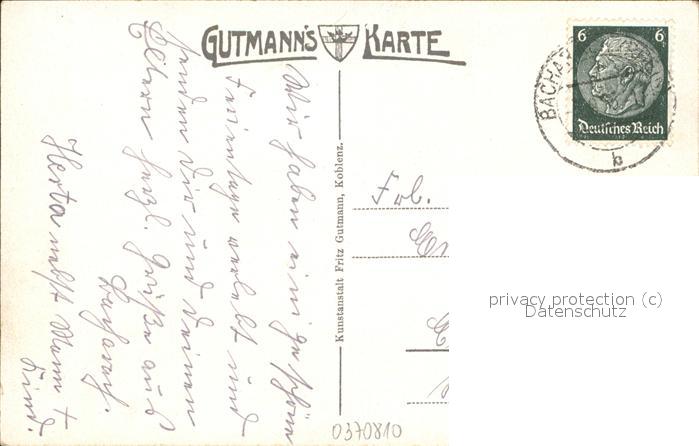71510370 alte Postkarte Bacharach Rhein Ortsblick postalisch gelaufen Erhaltung siehe scans KatCode: 11110007339003